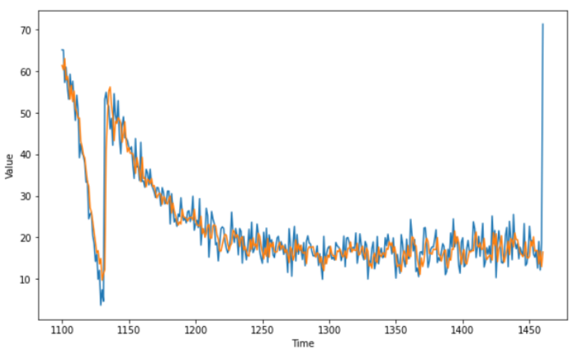 - If your forecast did achieve this threshold run the following cell to save your model in a HDF5 file file which will be used for grading and after doing so, submit your assigment for grading.